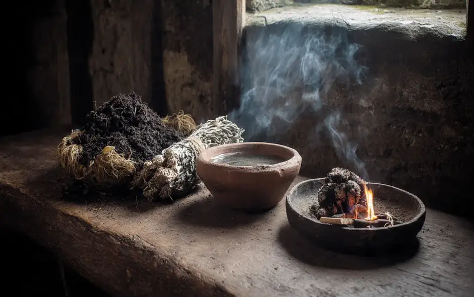 - Räucherpflanzen: Andorn, Beifuß, Eisenkraut, Farn, Geißblatt, Schlüsselblume, Lebensbaum, Fliegenpilz, Harze, Blutweiderich, Erdrauch, Sauerklee, Wegerich.