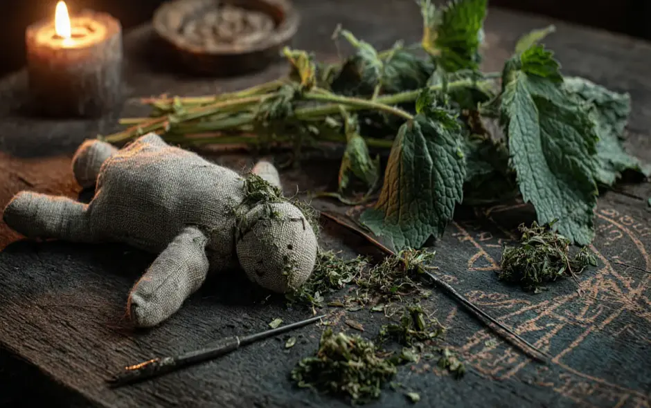 Schutzpuppen und Fluchabwehr: Püppchen wurden mit getrocknetem Brennnesselkraut gefüllt, um so einen Fluch zu brechen und negative Energien an den Aussender zurückzusenden, wie bei dem europäischen Atzmann. Brennnesselpulver wurde im Haus ausgestreut, um Schlechtes abzuwehren. Zusammen mit der Schafgarbe bei sich getragen, befreite es von inneren Ängsten. Wenn getrocknete Brennnessel bei sich getragen wurde, war derjenige vor negativer Energie anderer Menschen geschützt und gab Mut.