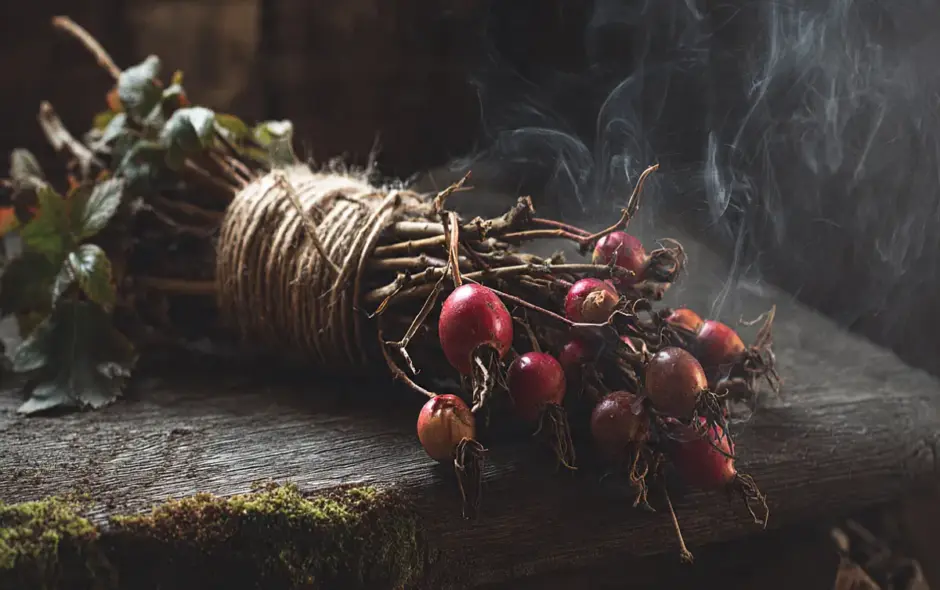 Mit Hagebutten zu räuchern gehört zu jedem Liebesritual. Wir können die getrockneten Hagebutten, Blütenblätter oder auch das Holz nehmen. Bei den Kelten wurden die Zweige verwendet.