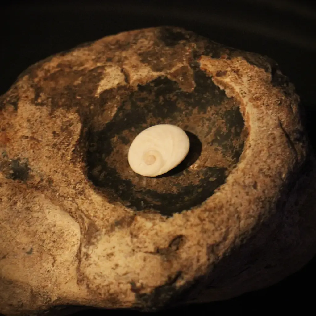 Das ist ein kleines Deckelchen der Turbanschnecke. Damit verschließt sie ihr Gehäuse vor Austrocknung. Wenn dieses Deckelchen versteinert, wird es zu einem harten, oft wunderschön gemusterten Stein.