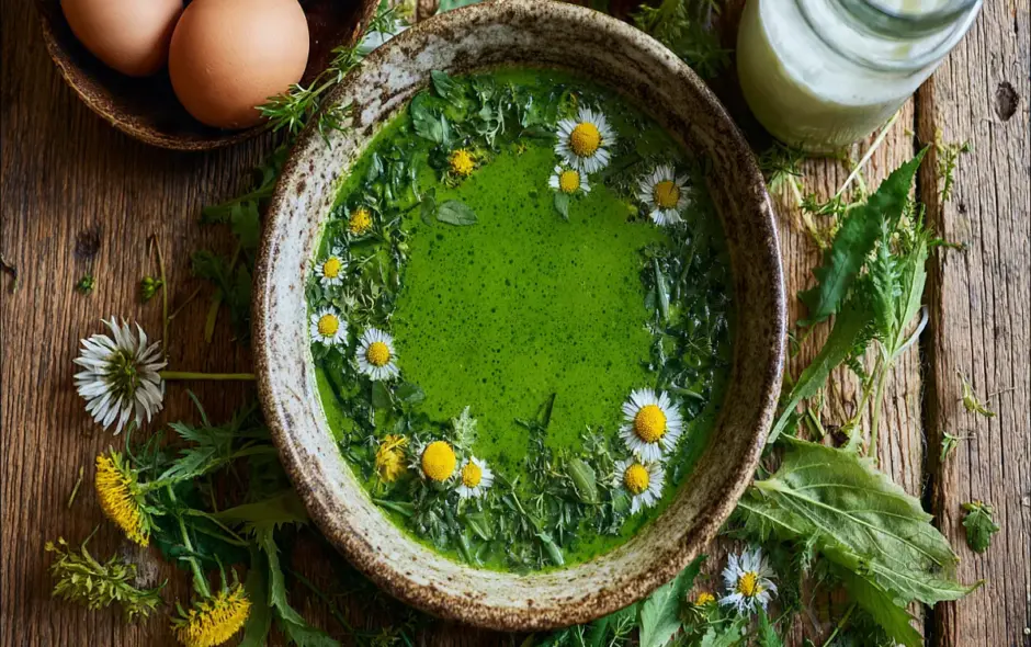 Diese Suppe diente den Menschen von damals, um ihre Abwehrkräfte zu stärken und der Frühjahrsmüdigkeit vorzubeugen. Sie verkörpert den Frühlingsanfang und dass Mutter Natur endlich zum Leben erwacht.