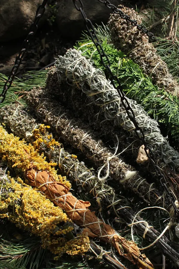 Im Allgemeinen sollten Räucherbündel nur im Freien bei einem Lagerfeuer oder einer Räucherzeremonie verwendet werden, weil die verbrannten Pflanzen leicht und locker abfallen.
