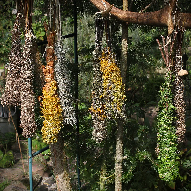 Trocknen: Nun hängt ihr das Räucherbündel luftig und trocken auf und lasst ihn nochmal für 5 bis 7 Tage nachtrocknen. Dann ist er reif für eine Räucherzeremonie.