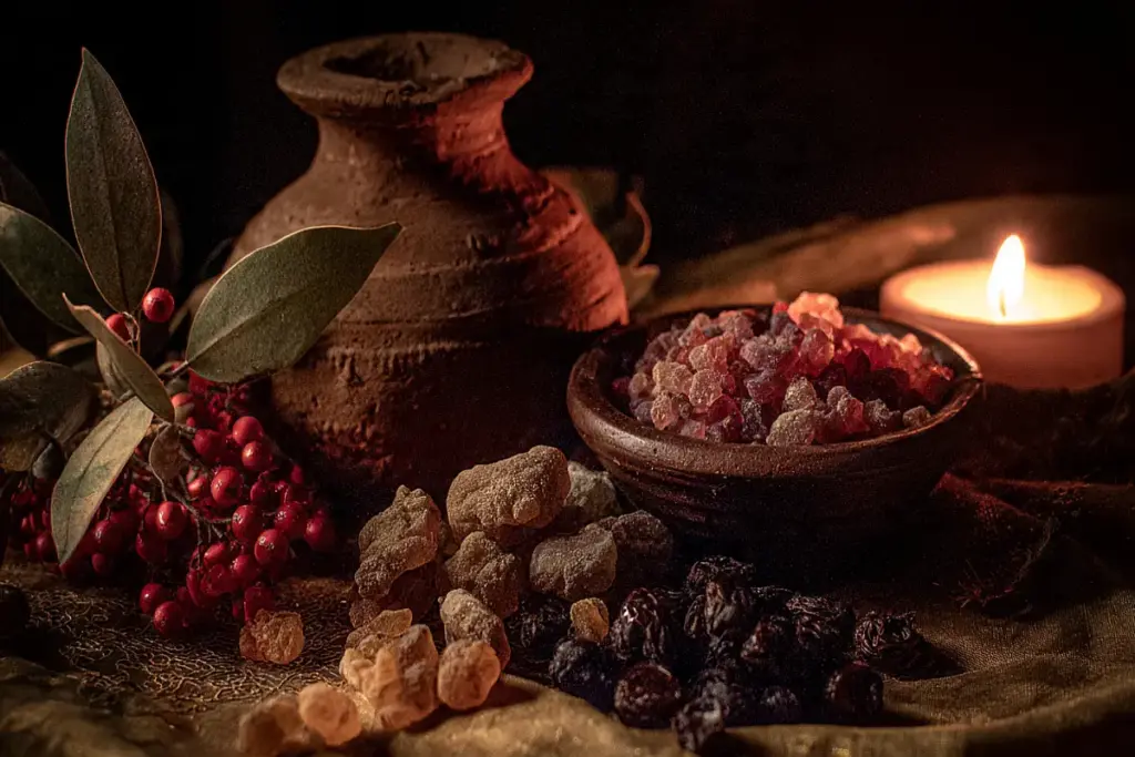 - Myrrhe & Weihrauch (Mit Bedacht! Eventuell mit Fichtenharz und Bernstein austauschen.)